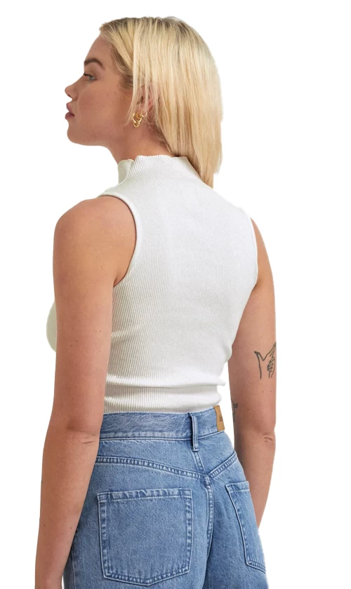 This tank is Iconic by name and iconic by nature. Our eco-friendly blend of recycled poly and hemp rib offers a slight stretch with a textured and heavyweight hand-feel. Our sleeveless design offers a fitted midline silhouette, flattering high cut neckline and raw-edged hem. In a duo of everyday colours, it pairs perfectly with anything high-waisted.