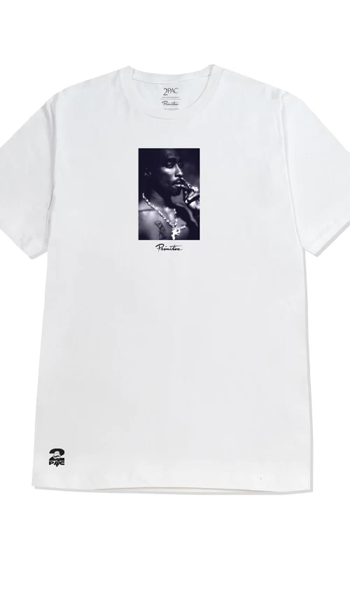 Enjoy wearing a street-style classic white tee with a hip-hop inspired design.