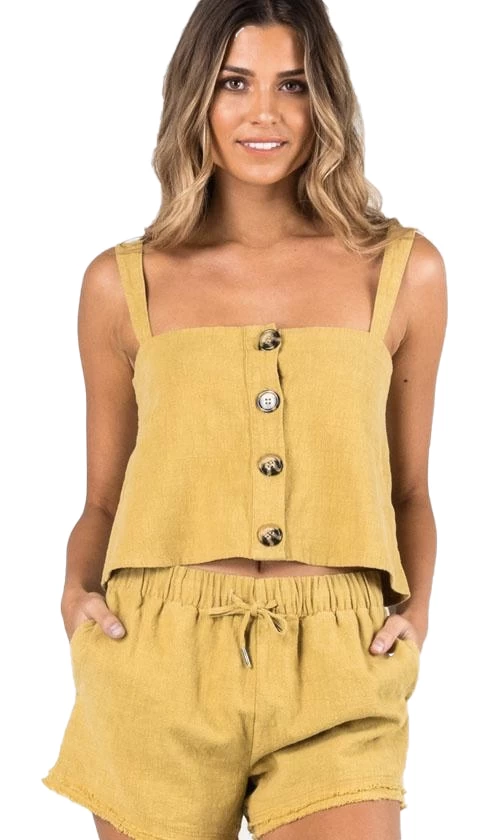 Rusty Heartbreaker Ladies Crop Cami Chartreuse