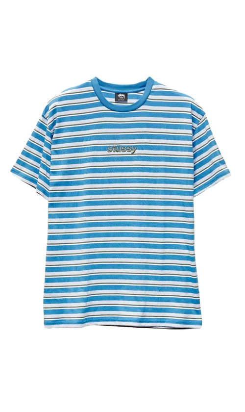 Stussy Italic Stripe Mens T-Shirt Silver Blue