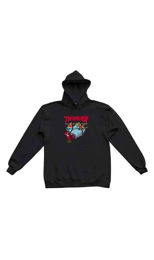 - Screen Printed Thrasher Neckface Design on Front, Kangaroo Pouch Pocket, Adjustable Drawstring Hood